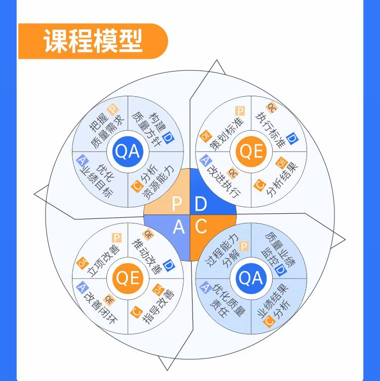 u 企業現任質量工程師 QE 也可以通過本課程學習,拔高質量格局、洞悉質量內涵,掌握高質量運營的思路與方法,從而成長為**的質量經理 QA 。