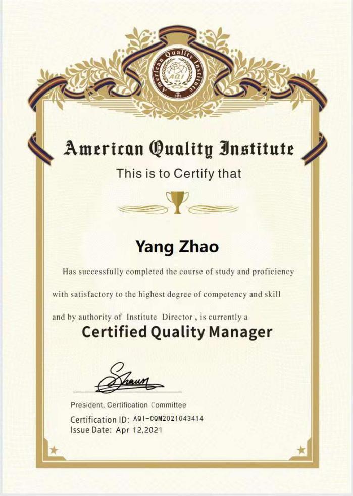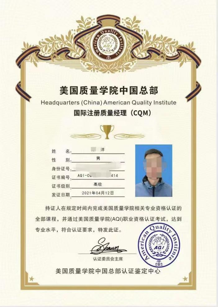 ◆ 認證說明:凡參加學習的學員,均安排認證美國質量學院國際注冊質量經理CQM證書,學員考試并合格者,頒發“美國質量學院AQI《國際注冊質量經理(CQM)》資質認證證書。網上注冊、官方網站查詢,國內國外雙向通用,是從業人員晉升、加薪、求職,法律公證的有效證件。請學員準備身份證復印件2份,學歷證復印件兩份,二寸證件照4張;